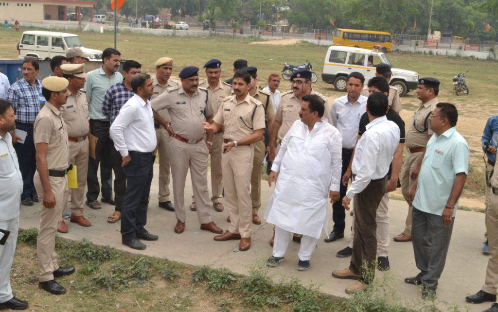 फोटो : सुरक्षा प्रबन्धो का जायजा लेते हुऐ पुलिस अधीक्षक अभिषेक गर्ग व विधायक सुभाष सुधा