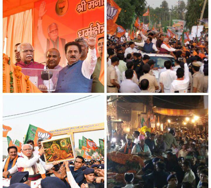 मुख्यमंत्री मनोहर लाल का रोड़ शो शनिवार को देर सायं थीम पार्क से शुरु हुआ, यह रोड़ शो बिरला मंदिर चौंक, छोटा बाजार, मैन बाजार, सीकरी स्वीट हाउस चांैक, पुरानी सब्जी मंडी, गऊशाला चौंक, झांसा रोड़, पुराना बस स्टैंड, निरंकारी भवन, रैड रोड़, रेलवे रोड़, बड़ा डाकखाना से होता हुआ न्यू कालोनी सनातन धर्म मंदिर पर सम्पन्न हुआ। इस रोड़ शो के दौरान प्रत्येक चौराहे और मार्ग पर भीड़ को देखकर मुख्यमंत्री मनोहर लाल के साथ-साथ संयोजक एवं विधायक सुभाष सुधा, राज्यमंत्री कृष्ण कुमार बेदी, राज्यमंत्री कर्णदेव काम्बोज, लाडवा विधायक डा. पवन सैनी, मुख्यमंत्री के मीडिया सलाहकार राजीव जैन, ओएसडी अमरेन्द्र सिंह, भाजपा प्रभारी बंतो कटारिया, भाजपा जिलाध्यक्ष धर्मवीर मिर्जापुर, जिला परिषद के चेयरमैन गुरदयाल सुनहेड़ी, नगर परिषद की अध्यक्षा उमा सुधा, युवा नेता साहिल सुधा के साथ-साथ सभी नेता खुशी से गदगद हो गए।
