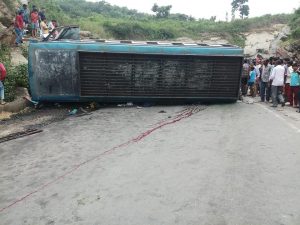 गोला-चारु पथ के कुल्ही घाटी में शनिवार को रांची से बोकारो थर्मल आ रही सुमित ट्रेवल्स की बस कुल्ही घाटी में गेयर फंस जाने से अनियंत्रित होकर डायवर्सन में टकरा के पलट गई। जिससे बस में दबकर एक महिला सहित तीन लोगों की मौत हो गई। जबकि दो दर्जन लोग गंभीर रूप से घायल हो गए।