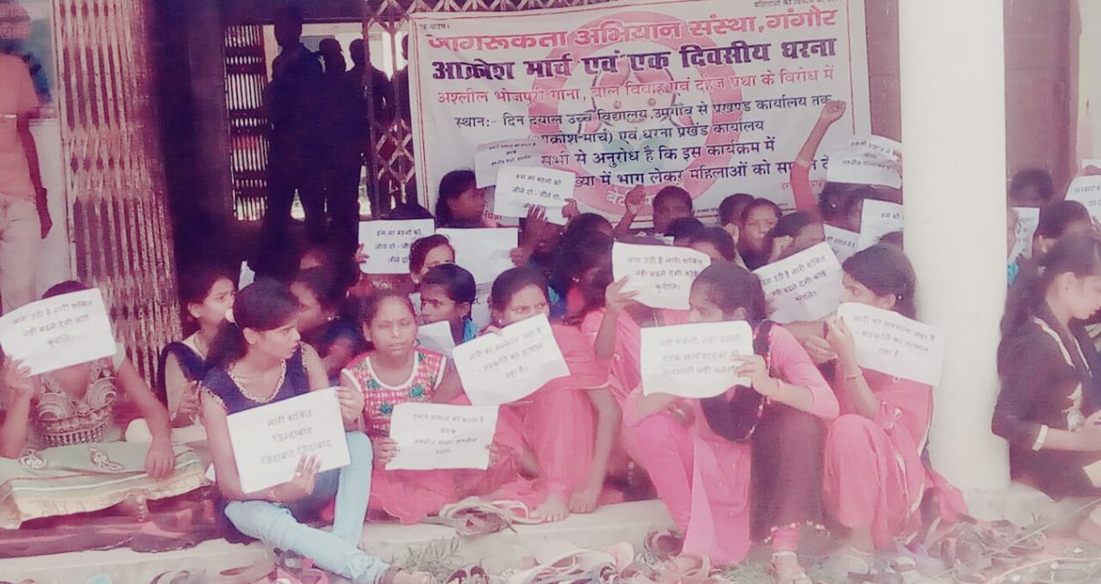 लड़कियों ने अश्लील भोजपुरी गाना बंद करने के लिए जोरदार नारे भी लगाए। कार्यक्रम को संबोधित करते हुए संचालिका बिट्टू कुमारी मिश्रा ने कहा कि आज बिहार में धड़ल्ले से बज रहे अश्लील गाने हम महिलाओं के लिए परेशानी का सबब बन गया है। जहां हमलोगों को शर्मिंदगी महशुश होती है।