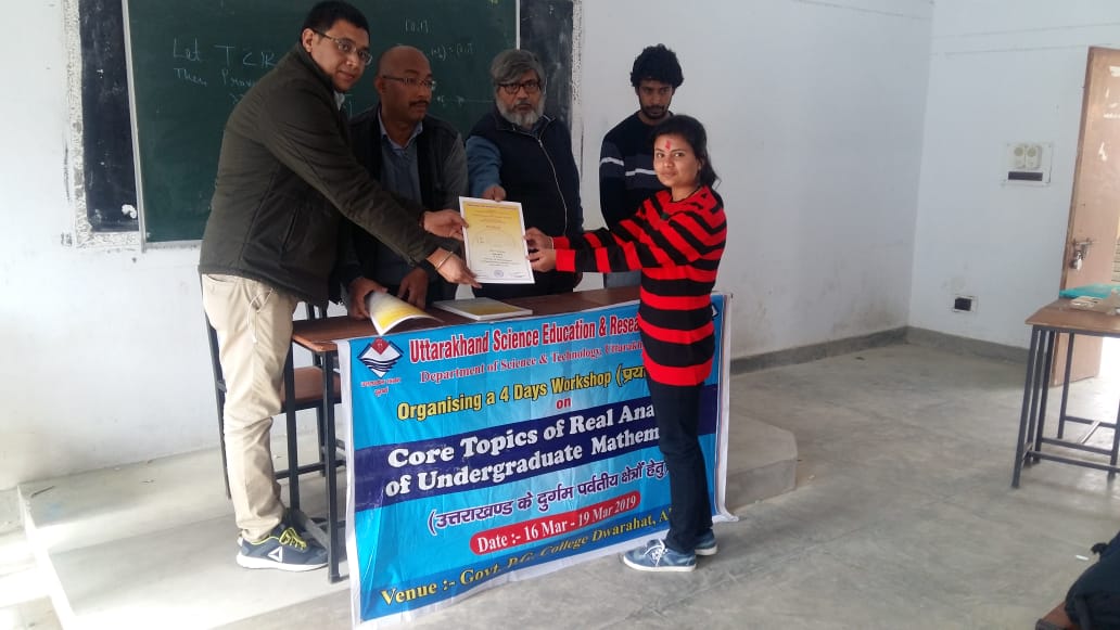 नई दिल्ली। उत्तराखण्ड विज्ञान शिक्षा एवं अनुसंधान केन्द्र (यूसर्क) द्वारा राजकीय पीजी कॉलेज, द्वाराहाट में ‘कोर टॉपिक्स ऑफ रियल एनालिसिस ऑफ अन्डर ग्रेजुएट मैथेमैटिक्स’ विषय पर तीन दिवसीय कार्यशाला का सोमवार को समापन हो गया। कार्यशाला के अन्तिम दिन इंडियन इंस्टीट्यूट ऑफ सांइस बैंगलुरू के प्रो. ई.के. नारायणन ने गणितीय गणना में प्रयुक्त होने वाले गणनीय व अगणनीय समुच्चयों के बारे में जानकारी प्रदान की।