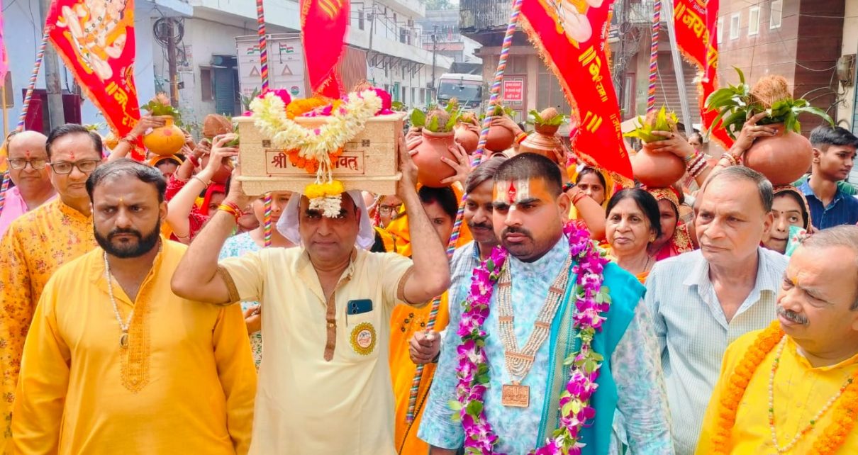 आज दिनांक 08 सितम्बर 2025 को श्री राधा कृष्ण मंदिर, मारवाड़ी गंज, बरेली से श्री मद् भागवत सप्ताह ज्ञान यज्ञ (08 से 15 सितम्बर) के शुभारंभ अवसर पर भव्य कलश यात्रा निकाली गई।