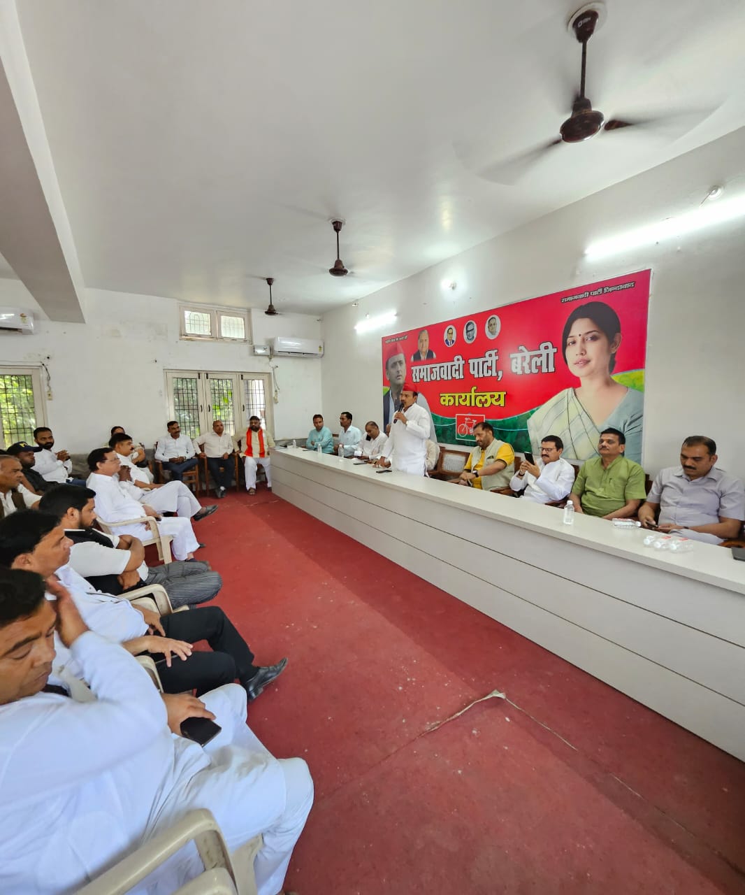 बैठक को सम्बोधित करते हुए पूर्व सांसद प्रवीण सिंह ऐरन ने कहा हमारे पास जितने मज़बूत कार्यकर्ता हैं उतने किसी दल के पास नहीं अगर हम इन मजबूत कार्यकर्ताओं की ताकत बूथ पर लगा दें तो हम कोई भी चुनौती पार कर जाएंगे, हम सभी यह आज से ही ठान लें कि हम अपना बूथ मजबूत करने के लिए जुटेंगे तो 2027 में अखिलेश यादव को मुख्यमंत्री बनने से कोई नहीं रोक सकता।