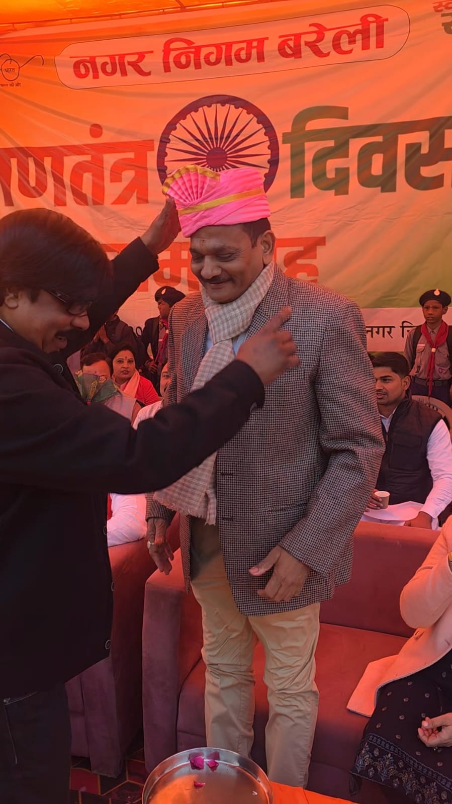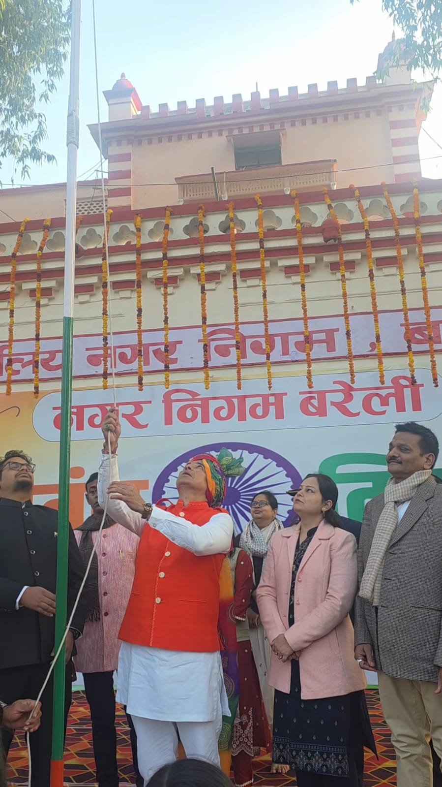 इसके अलावा राजेश अग्रवाल नगर निगम भी पहुंचे, जहां गणतंत्र दिवस के अवसर पर ध्वजारोहण कार्यक्रम आयोजित किया गया था। नगर निगम परिसर में महापौर उमेश गौतम ने तिरंगा फहराया और राजेश अग्रवाल को पगड़ी पहनाकर सम्मानित किया गया। राष्ट्रगान के साथ पूरा माहौल देशभक्ति के रंग में रंग गया। इस कार्यक्रम में पार्षद, अधिकारी और कर्मचारी भी बड़ी संख्या में मौजूद रहे।